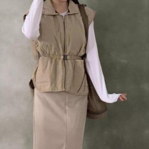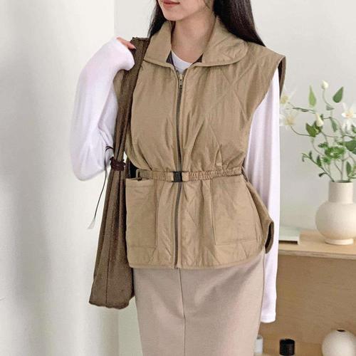 [신상오픈런]여성 기모 퀼팅 패딩 조끼 벨트 스타일 나일론