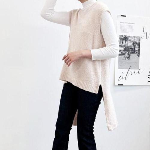 [셀러허브_여성트랜드패션]Rly 니트 롱니트 트임 언발 조끼 여성 라운드 여자