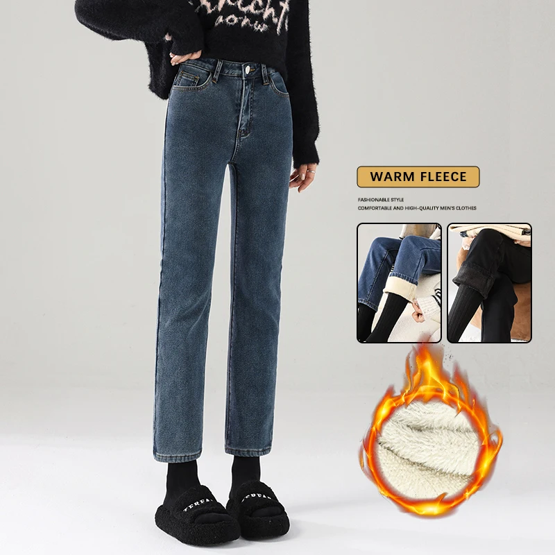 겨울 따뜻한 청바지 여성의 두꺼운 부드럽고 편안한 탄성 데님 바지 패션 한국어 스트레이트 여성 벨벳 따뜻한 의류