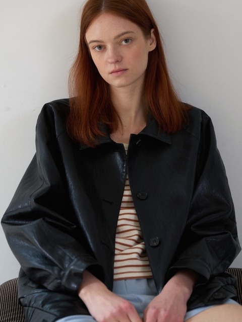 [JJ지고트](신세계 사우스시티)베이직 레더 세미크롭 자켓 GRAA3LTR41