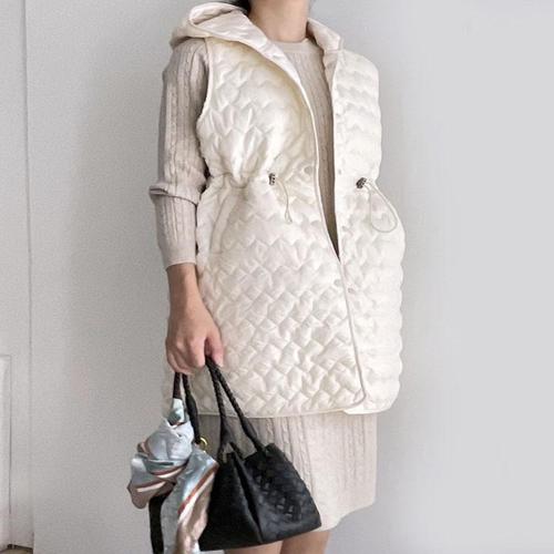 [하젤]러바 경량 퀼팅 후드 롱패딩 베스트_F4277