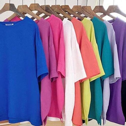 고급감 신상 상의 반팔 예술적 캐주얼 연령감 줄이는 여성용 티셔츠 150KG까지 날씬해 보이는 여성 티셔츠 여름 빅사이즈 루즈핏 1+1+1 3장입