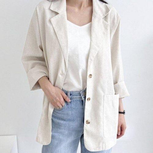 면마 정장 코트 캐주얼 정장상의 빅사이즈 여성 세미정장 린넨 아우터 자켓 가디건 정장자켓 재킷 코트 D99U