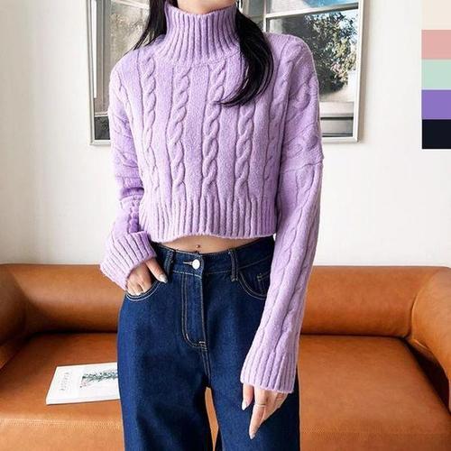 [셀러허브_여성트랜드패션]ONM 여자 꽈배기 답답하지않는 크롭 목폴라