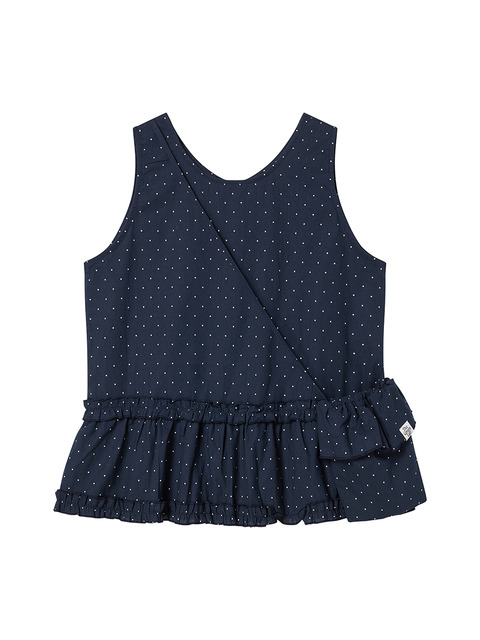 [더그린랩] 레이어드 도트 프릴 미니 파우치 슬리브리스 탑_네이비, 화이트
