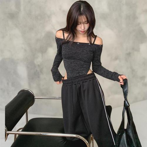 옷자락 / 여성 오프숄더 아일렛 디자인 바디수트 티셔츠