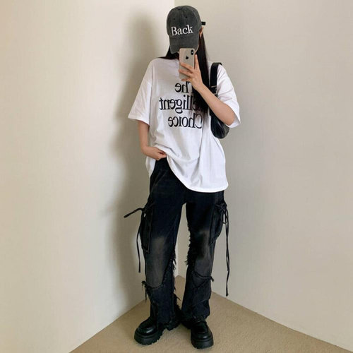 [옷자락]여성 데일리 박스핏 면반팔 레터링 티셔츠