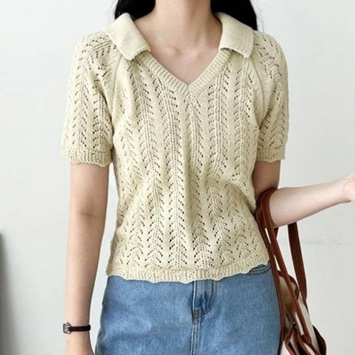 [엄지척]전체 펀칭 스타일 여자 카라 브이넥 반팔 니트_19612681_667501