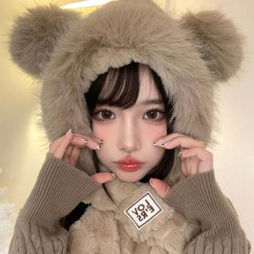 [신상오픈런]|CMC1D6F|여자 겨울 방한 밍크 털 볼륨 후드 머플러 모자_19287375_597559