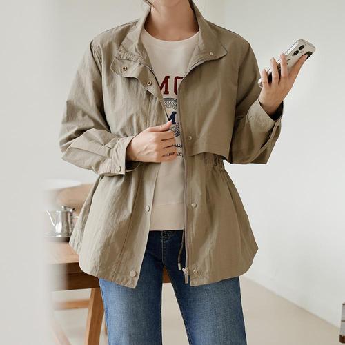 [다잇템]여자 봄 경량점퍼 스트링 하이넥 야상 점퍼