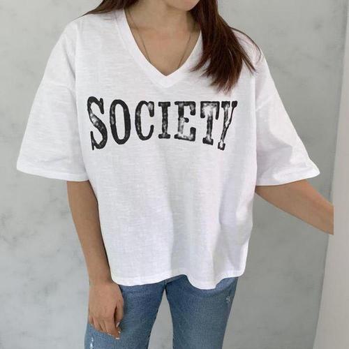 [옷자락] 여성 면혼합 레터링 브이넥 루즈핏 반팔 티셔츠