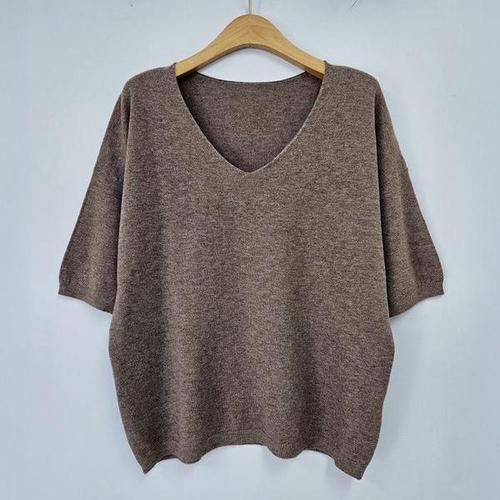 여성 러블리 니트 라운드넥 여름 엄마옷 시크 브이넥 칠부 루즈핏 빅사이즈 봄가을 반팔 얇은 티 셔츠 다