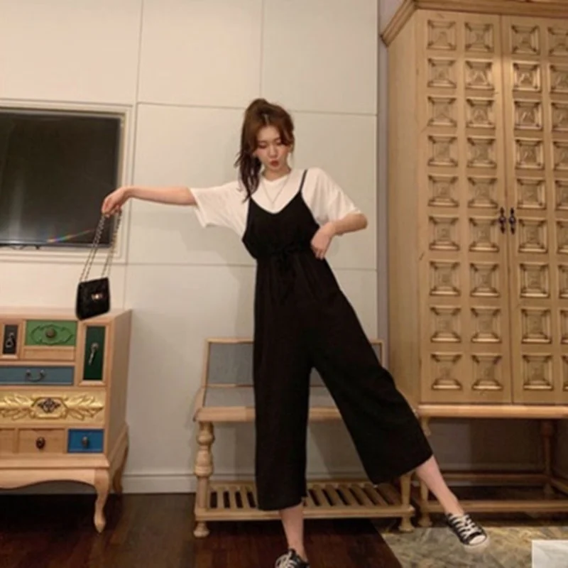 여름 여성 와이드 레그 팬츠 세트 루즈핏 체형보정 슬리밍 티셔츠 투피스 세트 패셔너블한 한국 스타일 출퇴근룩