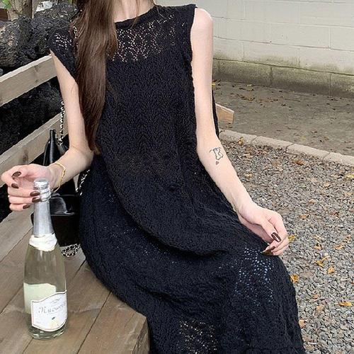 조끼 민소매 니트 뷔스티에 여자 여름 그물 레이어드 WFLQ85E