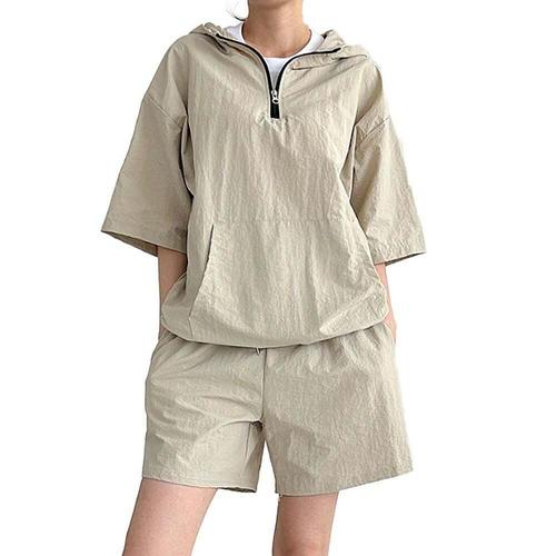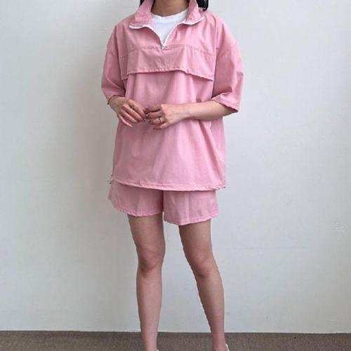 여성 여름 트레이닝 세트 아노락 반팔 반바지 셋업 cre+003Gw
