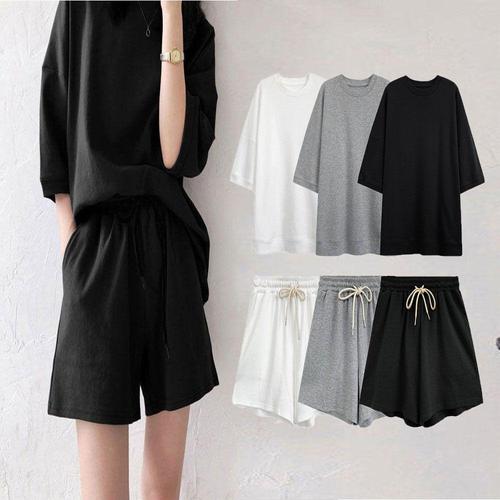 ANYOU 여자 여름 트레이닝 세트 루즈핏 반팔 반바지 츄리닝세트 캐주얼
