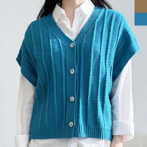 여성 정장 조끼 여름 린넨 베스트 마 브이넥 단추