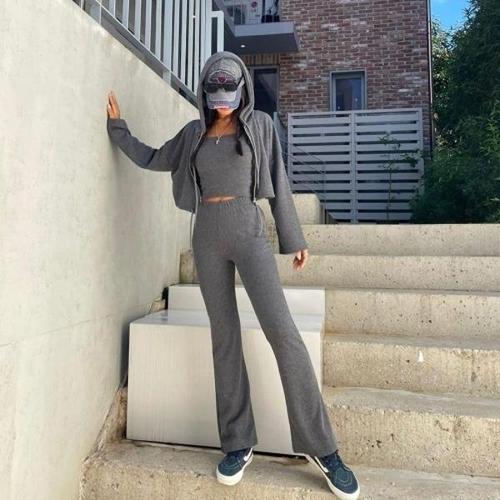[옷자락]여자 쓰리피스 골지나시 후디집업 트랙수트 나팔 세트