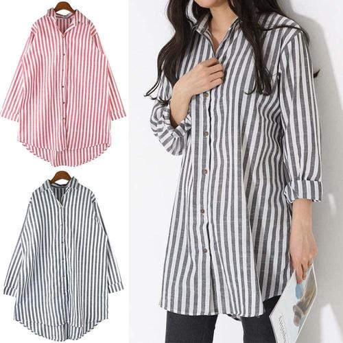 [셀럽하우스]박시 EJHO1488 셔츠 줄무늬 여자남방 청바지 코디 루즈핏 코디