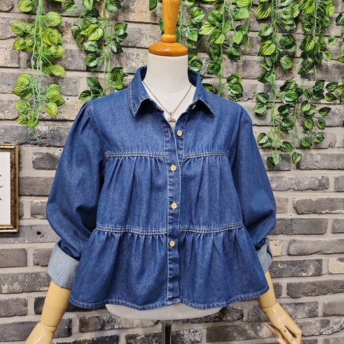 벨라 여성 세미 크롭 카라넥 단추 오픈 데님 긴팔 셔츠남방 JL-WSH-1585-진청