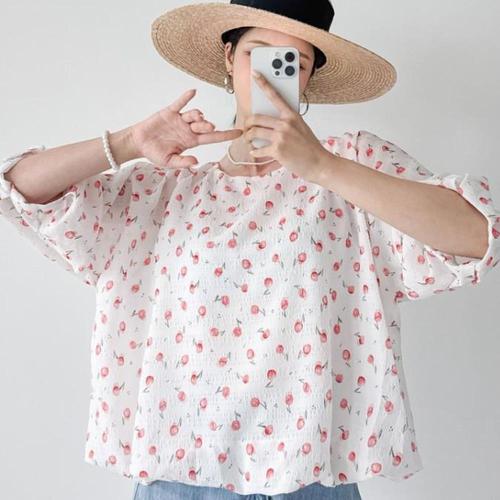 [신상오픈런]여성 여름 체리 퍼프 블라우스 빅사이즈 시어서커 벌룬