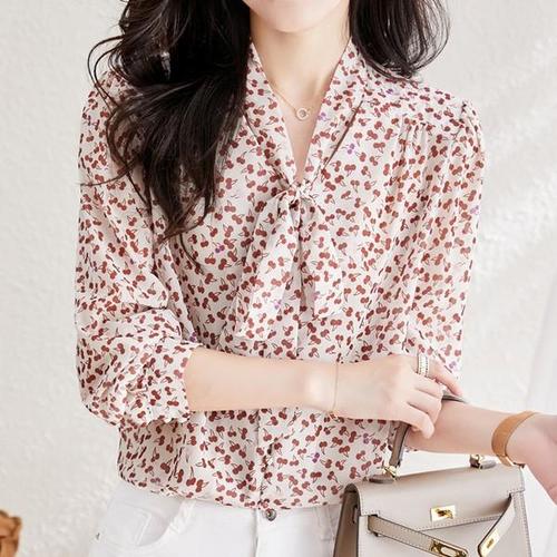 스타일아유 여성 가을 체리 데일리 캐주얼 긴팔 블라우스