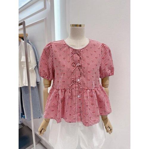 갤러리아_[ab.f.z] 체리 체크 반팔 블라우스(ATZ3ZB35H)