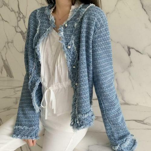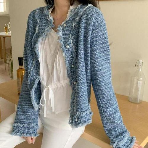 [셀러허브_여성트랜드패션]여자 고급스러운 데일리 프린지 트위드 숏자켓