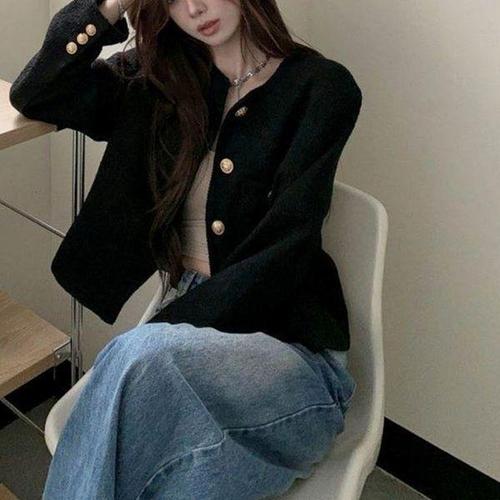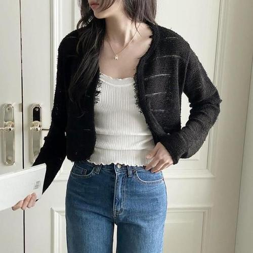 [다잇템_패션]여자 트위드 V넥 금장단추 숏가디건 자켓