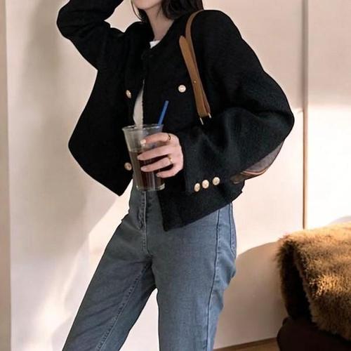 [셀러허브_여성트랜드패션]넥 러브 라운드 버튼 숏자켓 트위드