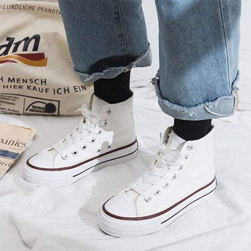 [신상오픈런]여성용 키높이 캔버스 하이탑 스니커즈 캐주얼 운동화