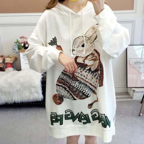 [셀럽하우스]여성 AWKY4531 가을겨울 캐쥬얼 데일리 루즈핏 래빗 롱후드티