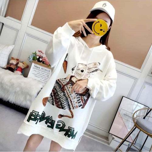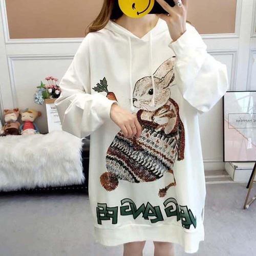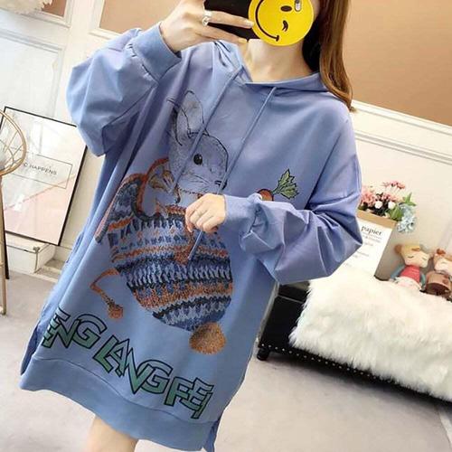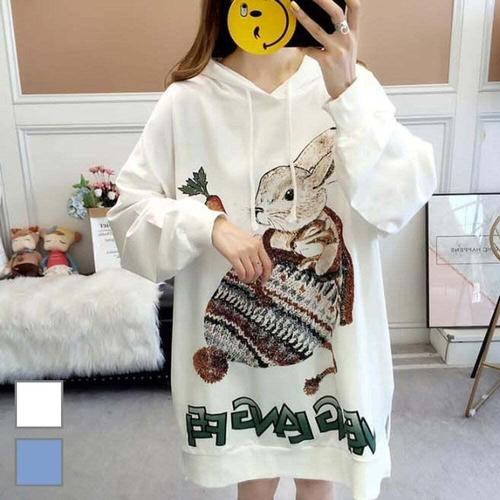[셀럽하우스]여성 ZWBQ9524 2색 프리사이즈 래빗마크 루즈핏 롱 후드 티셔츠