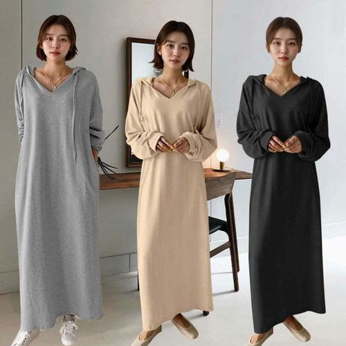 [오노마] ONM 데일리 여성 겨울 기모 루즈핏 후드 패션 롱 원피스