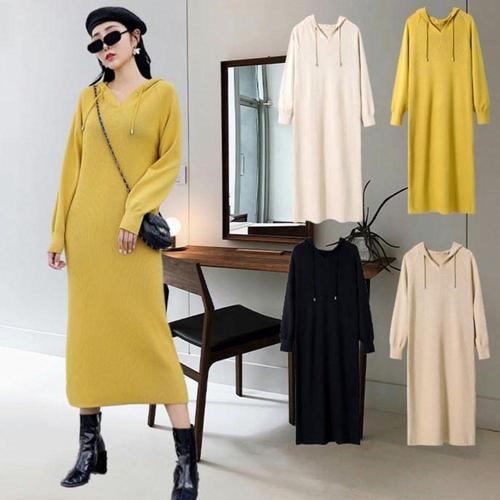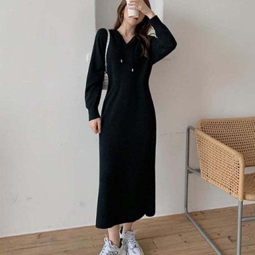 [셀럽하우스]여성 QNHG2774 우아한 스타일 슬림라인 후드 니트 롱티셔츠