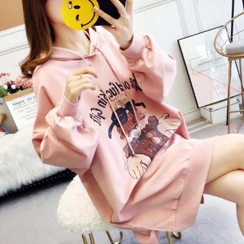 [셀럽하우스]귀여운 KEXE5718 이미지 여자 외출 티 롱 후드 긴팔 티셔츠