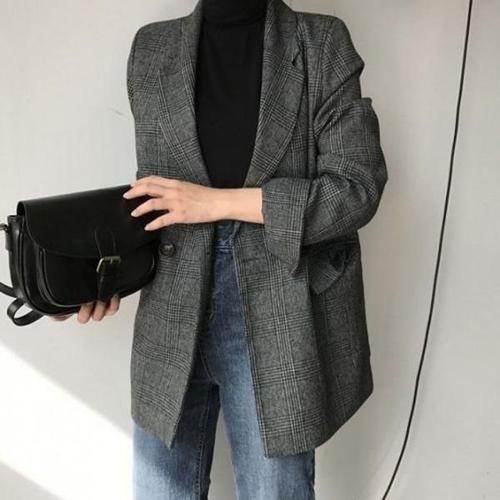 가을 소매 롤업 체크 자켓 여성가을의류 캐주얼정장