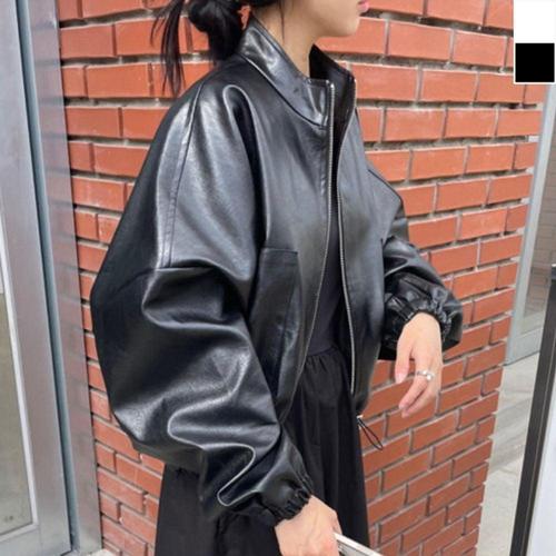 여성 오버핏 라이더 가죽자켓 1P 벌룬 레더 재킷 점퍼 WE1F7C7