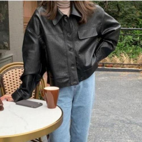 [JHQRM7IC_4B]코디 신발 여성 빅사이즈 가죽점퍼 봄 루즈핏
