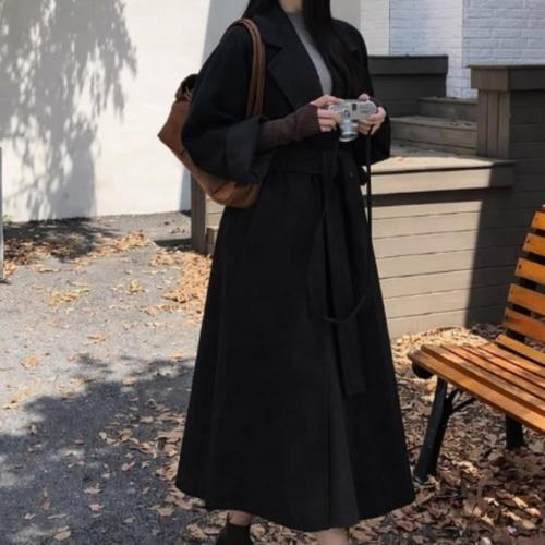 [옷자락]여자 오버핏 테일러드 스트링 벨티드 데일리 클래식 겨울 롱코트