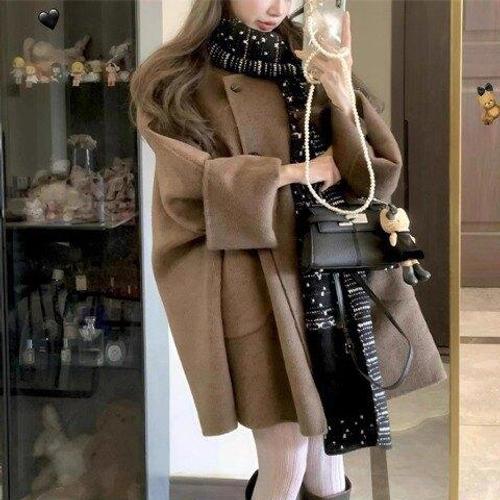 ANYOU 겨울 여성 울 코트 빅사이즈 루즈핏 보온 코트 정장 코트