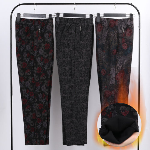 그레이캣 / 기모일자바지 겨울몸빼바지 꽃무늬 기모밴딩팬츠
