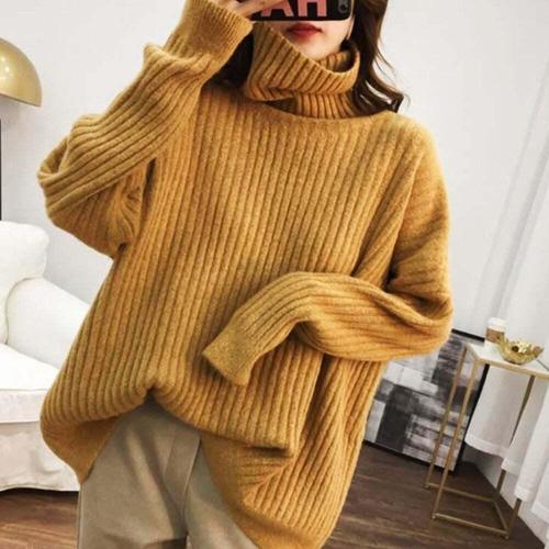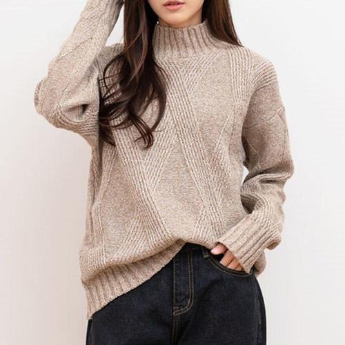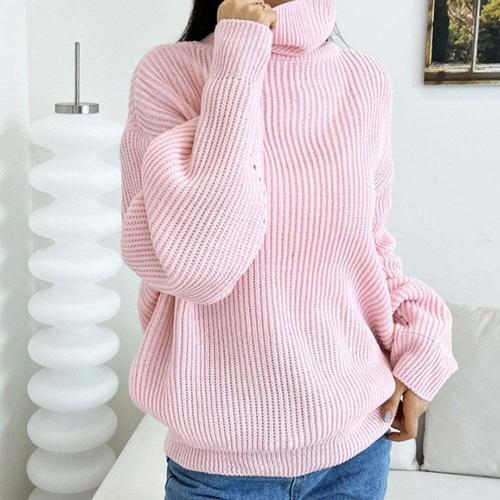 포씨 여성 초봄 니트 목폴라 터틀넥 루즈핏 스웨터