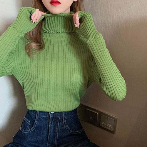 [의류] 골지 여성 폴라티 슬림핏 목폴라 긴팔 니트 티셔츠