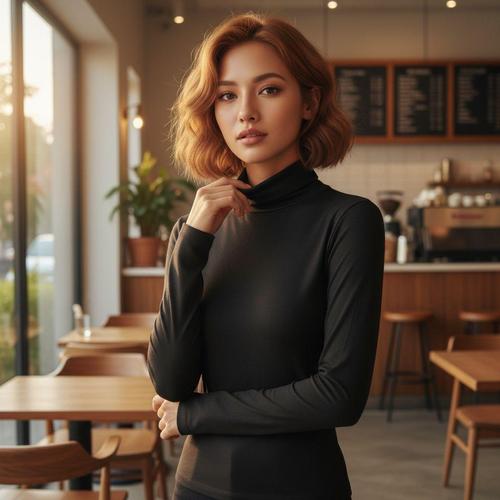 여자목폴라 여자 폴라티 스판 반 데일리 코디 긴팔 목폴라 WFJHPNJ