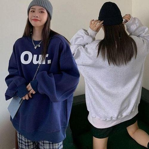 데일리앤 안나 따뜻한 기모 안감 겨울 루즈핏 맨투맨 부클 레터링 티셔츠