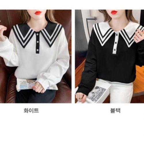 [셀러허브_여성트랜드패션]맨투맨 코디 활용도높은 일상복 베이직 두줄 라운드티셔츠 빅카라 티셔츠