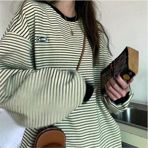 단가라티셔츠 라운드티셔츠 줄무늬티셔츠 여자 여 WFKNYE9