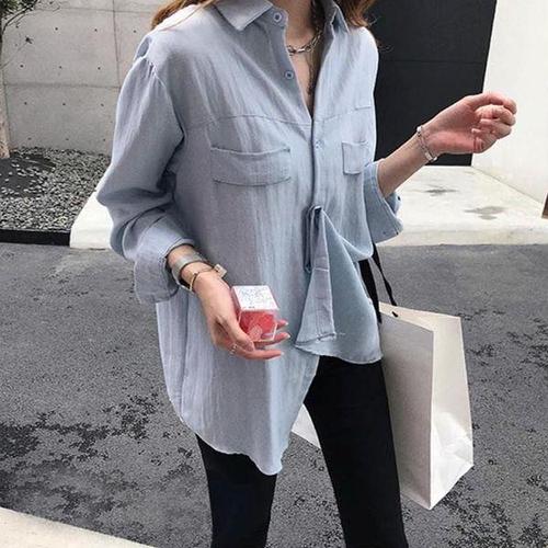[에이치플러스몰]여성 2컬러 세련된 무드 루즈핏 데일리 롱셔츠 남방