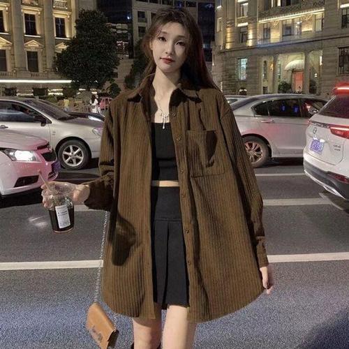 [에이치플러스몰]여성 2컬러 루즈핏 세로 골지 롱셔츠 내추럴핏 남방
